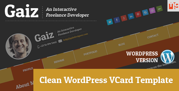 Gaiz Clean Horiozontal Scrolling WordPress Vcard (Portfolio)